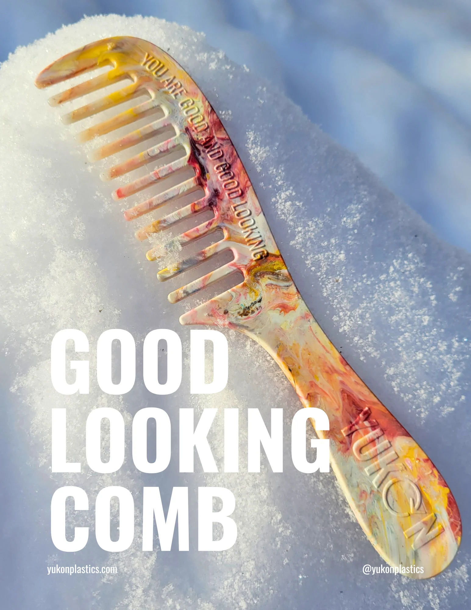 Discover the perfect blend of unique style and true sustainability with the Good Looking Comb. This recycled plastic comb is meticulously crafted from 100% materials sourced directly from the Yukon. This isn’t just a tool for your hair—it’s a piece of a circular economy.